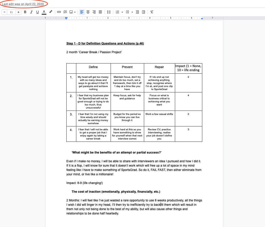 Fear Setting made me realise that doing nothing was the biggest risk of all. I was more afraid of wasting my mid-twenties to chase a dream than I was of losing a bit of income.